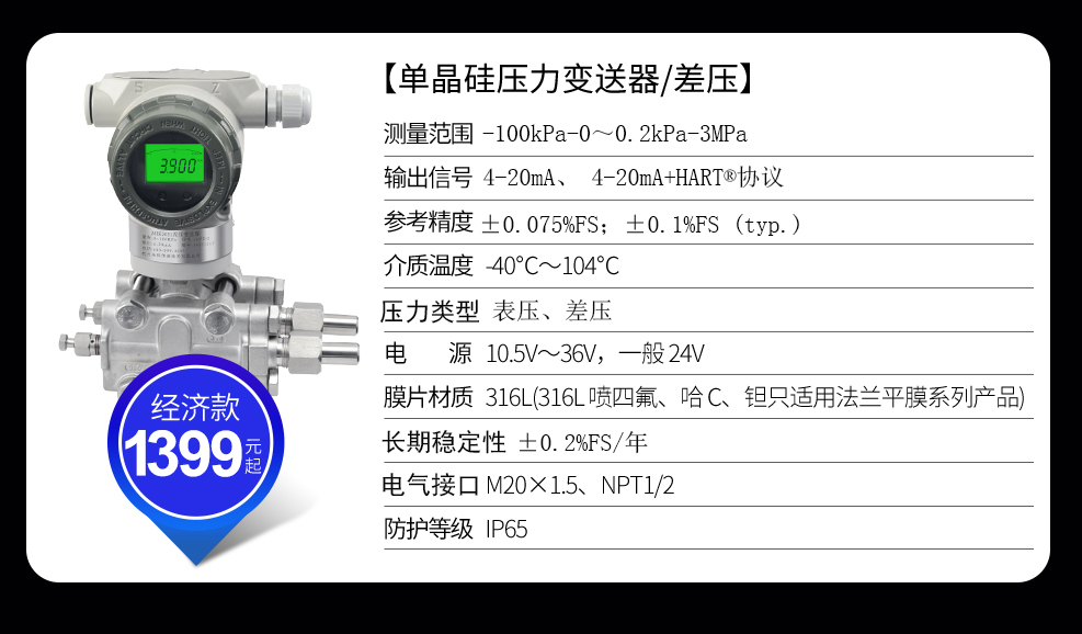 SIN-P2051G差壓安裝式表壓/絕壓變送器用于測量液體、氣體或蒸汽的液位、密度、壓力,然后將其轉(zhuǎn)變成4~20mADC HART電流信號輸出。采用先進(jìn)的高精度單晶硅技術(shù),測量精度高達(dá)0.075級,特有的雙過載保護(hù)膜設(shè)計,單向過壓高達(dá)10MPa