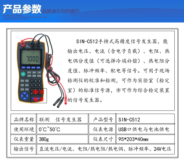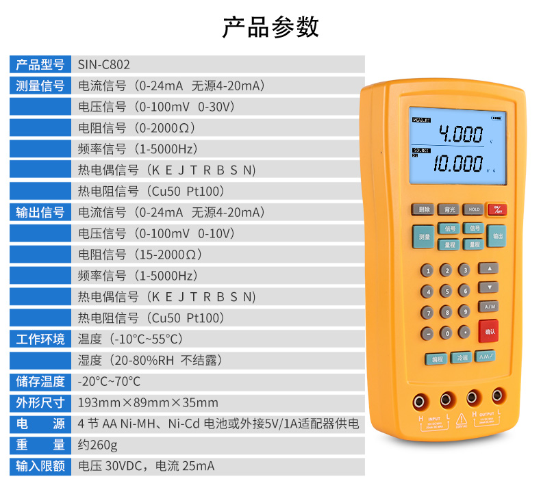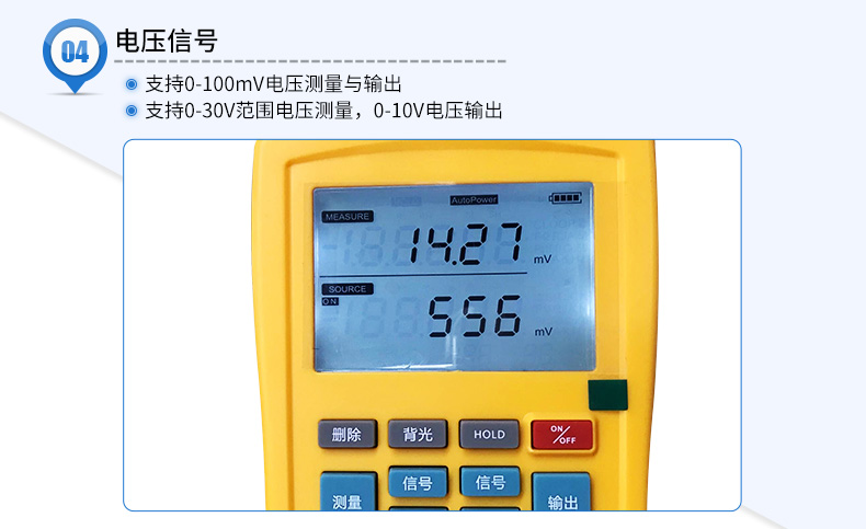信號(hào)發(fā)生器具有多種信號(hào)的測(cè)量和輸出功能,包括電壓、電流、熱電偶,采用高清LCD液晶屏和功能分明的硅膠按鍵,操作簡(jiǎn)單,待機(jī)時(shí)間長(zhǎng),精度高,并且具有可編程輸出的功能。