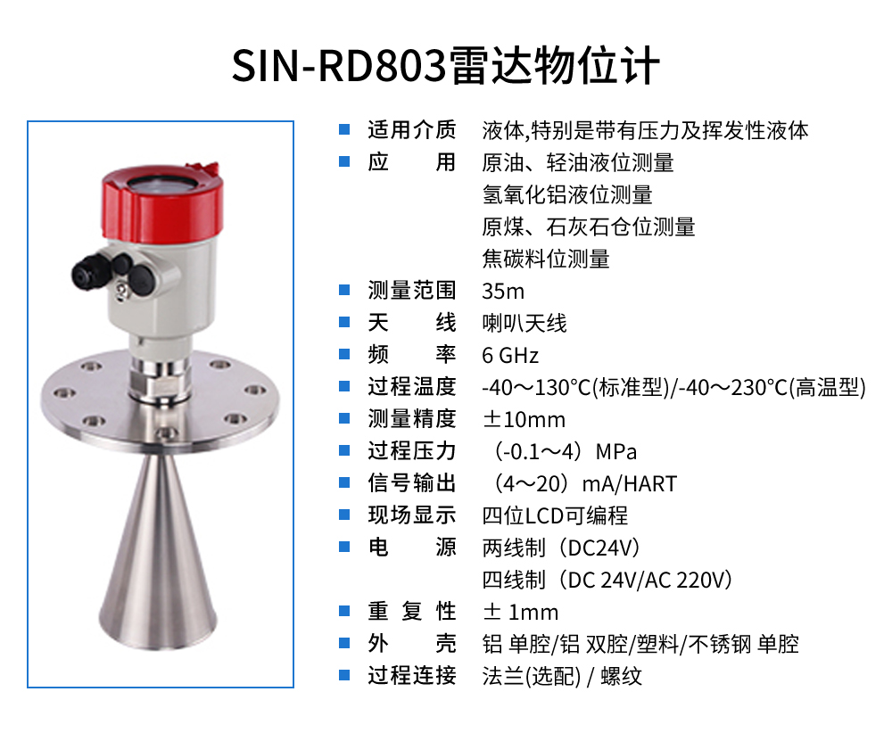 雷達(dá)液位計天線發(fā)射及窄的微波脈沖,這個脈沖以光速在空間傳播,遇到被測介質(zhì)表面,其部分能量被反射回來,被同一天線接收。發(fā)射脈沖與接收脈沖的時間間隔與天線到被測介質(zhì)表面的距離成正比,多用于水位、料位與化工場合。