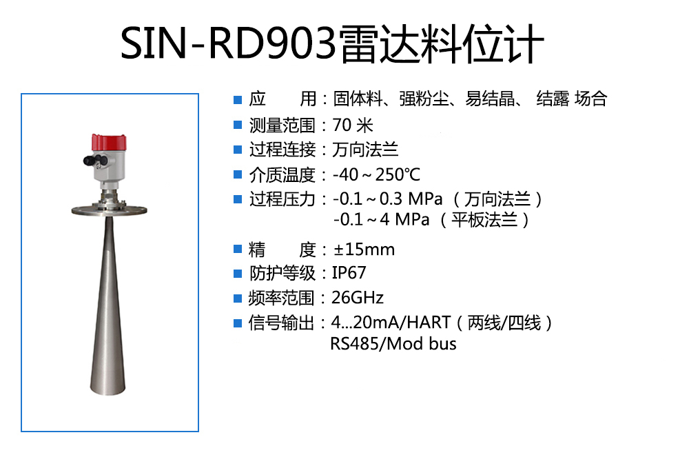 90 系列傳感器是 26G 高頻雷達式物位測量儀表,測量最大距離可達 80 米。天線被進一步優(yōu)化處理,新型快速的微處理器可以進行更高速率 的信號分析處理,使得儀表可以用于各種強腐蝕性液體的測量。