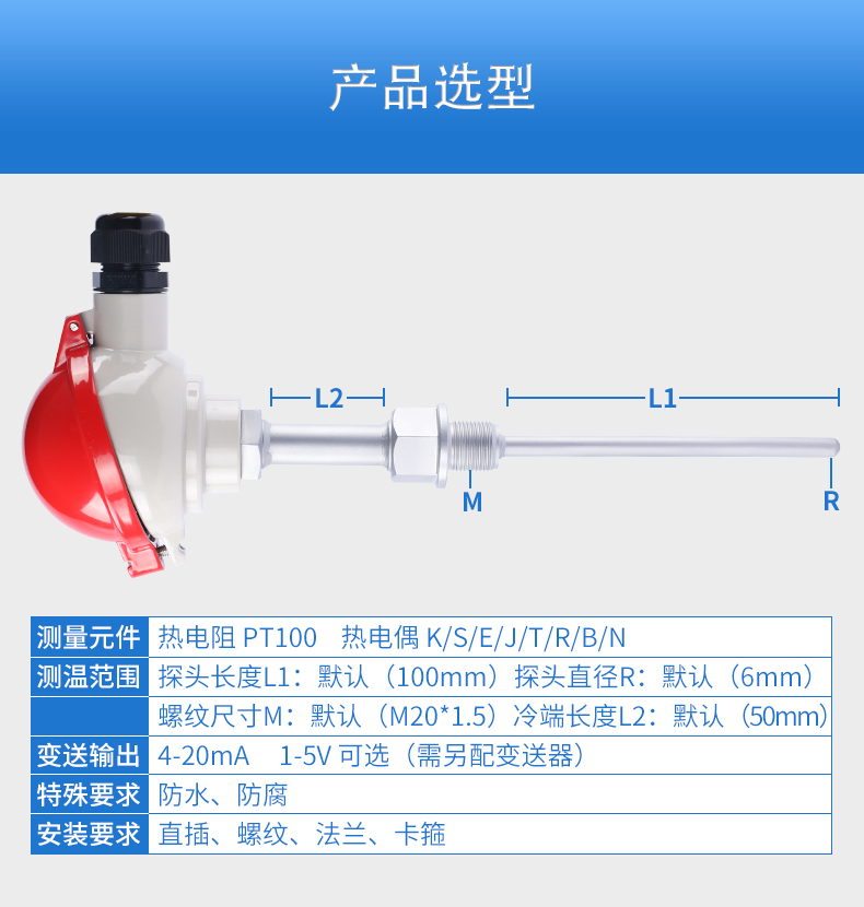 您的位置: 首頁 > 熱電偶 >wzp-230鎧裝316l螺紋法蘭安裝鉑熱電阻Pt100一體化溫度傳感器蒸汽