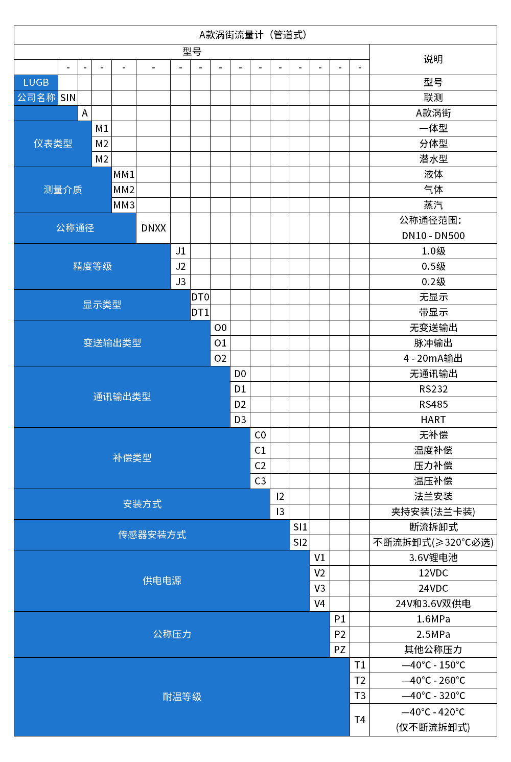 LUGB-SIN-A渦街流量儀表廣泛用于供熱公司、熱力公司、化工行業(yè)等行業(yè),對過熱蒸汽、飽和蒸汽、壓縮空氣和一般氣體、水和液體的計(jì)量和控制。加厚本體