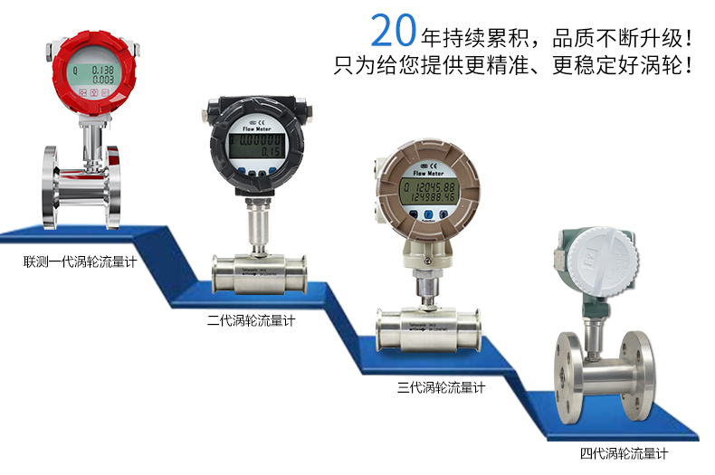 流體流經傳感器殼體,由于葉輪的葉片與流向有一定的角度,流體的沖力使葉片具有轉動力矩,克服摩擦力矩和流體阻力之后葉片旋轉,在力矩平衡后轉速穩定,在一定的條件下,轉速與流速成正比,由于葉片有導磁性,它處于信號檢測器(由永久磁鋼和線圈組成)的磁場中,旋轉的葉片切割磁力線,周期性的改變著線圈的磁通量,從而使線圈兩端感應出電脈沖信號,此信號經過放大器的放大整形,形成有一定幅度的連續的矩形脈沖波,可遠傳至顯示儀表,顯示出流體的瞬時流量或總量。