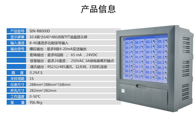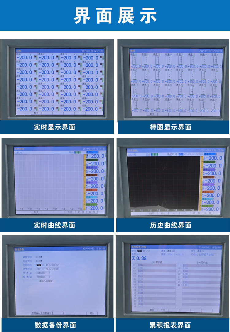 無(wú)紙記錄儀是將采集的數(shù)據(jù)/運(yùn)算數(shù)據(jù)以時(shí)間為基軸記錄在儀器內(nèi)部的存儲(chǔ)系統(tǒng)中,無(wú)消耗任何常用的記錄設(shè)施,如:紙張、筆墨。記錄在儀器內(nèi)部的存儲(chǔ)數(shù)據(jù),通過(guò)運(yùn)算、模擬后顯示在液晶屏。常用顯示用液晶屏比較廣泛。在液晶屏屏幕上,可以顯示數(shù)字顯示、棒圖顯示、曲線顯示、報(bào)警列表等。無(wú)紙記錄儀采集的數(shù)據(jù),常用的有:溫度、壓力、流量、液位、電壓、電流、濕度、頻率、振動(dòng)、轉(zhuǎn)速等。