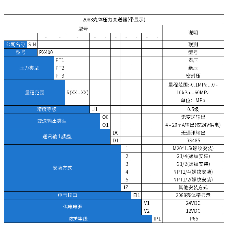 聯測_SIN-P400_2088型壓力變送器_榔頭型_可帶顯示