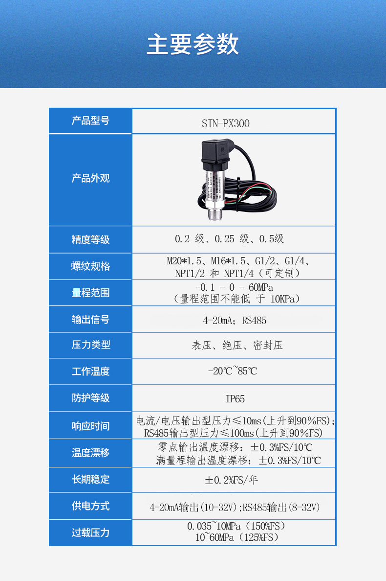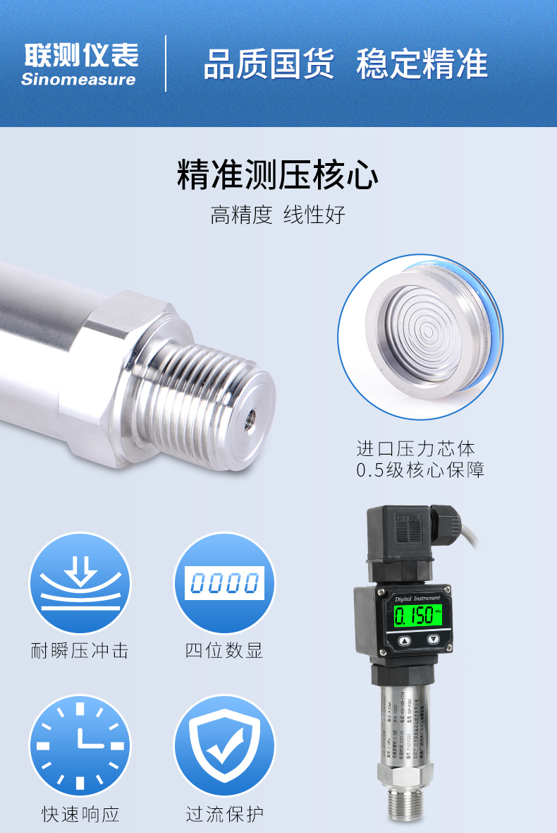SIN-PX300型數(shù)顯壓力變送器采用無(wú)縫焊接結(jié)構(gòu),可批量化生產(chǎn),經(jīng)濟(jì)、可靠,具有良好的適應(yīng)性,可應(yīng)用于各種復(fù)雜的環(huán)境,該產(chǎn)品輸出形式多樣,壓力接口可提供定制,滿(mǎn)足您的使用需求。同時(shí)數(shù)顯壓力變送器帶有現(xiàn)場(chǎng)顯示功能,能夠更加直觀(guān)的顯示現(xiàn)場(chǎng)的壓力波動(dòng)情況。廣泛應(yīng)用于工業(yè)自動(dòng)化設(shè)備配套以及石油、化工、冶金、電力等控制領(lǐng)域。