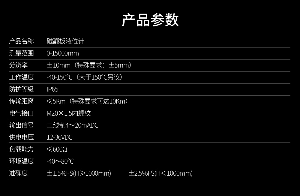 液位變送器由傳感器和電流轉換器兩部分組成,其傳感器部分安裝 在液位計指示器內(內置式)或不銹鋼保護管內(捆綁式),使其與磁 性液位計處于同一磁耦系統中,當液位上下波動變化時,其磁性浮子傳 感器內的干簧電阻矩陣中的干簧管,不斷地吸合或釋放,從而導致傳感 器矩陣的輸出電阻值發生變化,其變化的阻值與液位的變化值成對應的 線性關系,也就是液位的變化轉換成電阻的變化,并通過電流轉換模塊 將電阻變化轉換成 4~20mA 電流變化。
