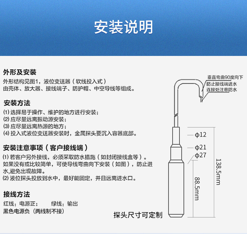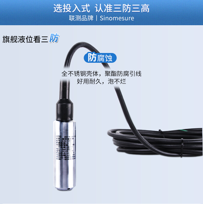您的位置: 首頁 > 液位變送器 >聯測_SIN-P260投入式液位計/水位計_消防水箱_污水池_水庫液位_